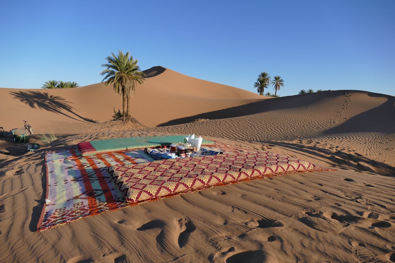 We were once again overwhelmed by the hospitality and the family atmosphere. You led us through an impressive landscape, chose great resting places and brought us a little closer to the life of the Berbers. Yedir spoiled us with his cooking skills. The evening camel ride through the thin plains of the Saharais an unforgettable experience. At this point we would also like to thank our camels, who patiently carried our daily need for melons (and all other loads) through the desert.