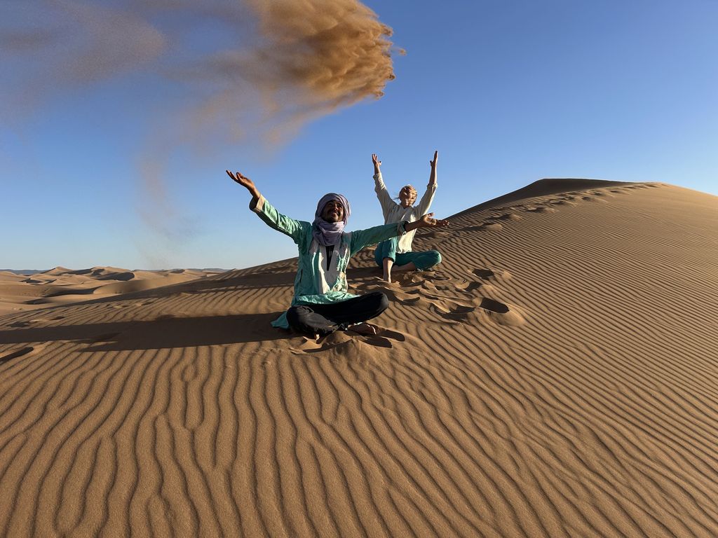 „Hello my dear Hafid! As promised, I wrote a little text that you can use as a recommendation from us and publish it on your website or Instagram, or where ever it might help you and your future potenial clients. The trip with Hafid and his team was an absolutely enriching and unexpectedly intense experience! I can recommend such a tour to everyone. Everything that others have written here is correct and I can only confirm it. The preparations and organization are made as easy as possible. Everything can be easily and uncomplicatedly clarified via WhatsApp and email. We were very well taken care of, the food was great, and we were able to learn a lot about the nomadic culture. And we learned a lot about generosity and hospitality; about how a helping hand is offered at every turn! Thank you also to Mrs. Boch-Jacuk, who was able to give us very friendly and patient answers to some questions. The desert has grounded us and there is really hardly anything more beautiful than sleeping under the open sky. Thank you so much! „